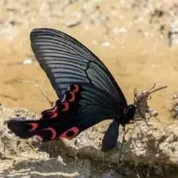 碎斑青凤蝶是凤蝶科、青凤蝶属昆虫。体背面黑色,具绿毛,腹面淡白色。翅黑褐色,…