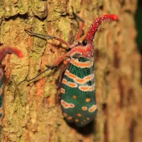 龙眼鸡是同翅目蜡蝉科蜡蝉属昆虫,又名龙眼蜡蝉、黄虫,长鼻子。体色艳丽;头额延伸如长鼻,额突背面红褐色,…
