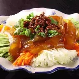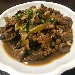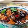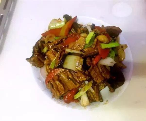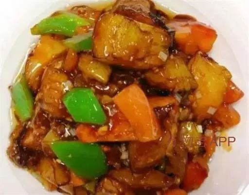 地三鲜(Sauteed Potato、green pepper and eggplant) ,是一道东北传统名菜,制作材料是三种地里时令新鲜的食材:茄子、土豆和青椒。它不仅在于鲜浓的味道、天然绿色的食材,更胜于它涵盖多种食材的营养,让三味非常普通的食材做成鲜爽无比的佳肴。