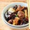 5.以少量热油爆香葱花及蒜茸,加高汤、生抽、糖、盐、茄子、土豆和青椒块,略烧;