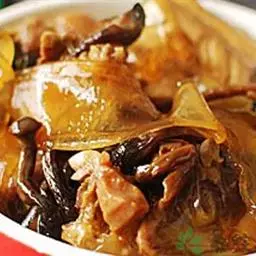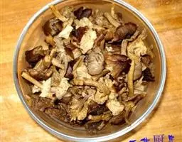 6.把三鲜倒进锅里,然后按日常炒菜顺序下生抽(酱油),黄酒,鸡精,盐,如果有荤汤(比如排骨汤,猪脚汤)可下一勺,别太多猛火煮一分钟,再加少许淀粉(水淀粉、芡粉)略炒,出锅,开吃。