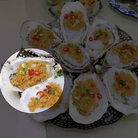 5.油沥出,重新下少许油,葱花,拍好的蒜,有时间的可以倒蒜茸,爆香。