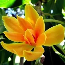 黄缅桂是木兰科、含笑属植物。常绿乔木,高达10余米;芽、嫩枝、嫩叶和叶柄均被淡黄色的平伏柔毛。…