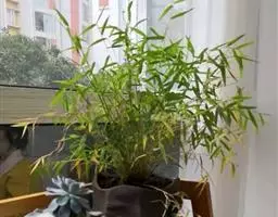 凤尾竹 Raeusch. ex Schult. ’Fernleaf’ R. A. Young)是禾本科,簕竹属孝顺竹的变种。植株较高大,杆高可达6米,竿中空,小枝稍下弯,下部挺直,绿色;竿壁稍薄;节处稍隆起,无毛;叶鞘无毛,纵肋稍隆起,背部具脊;叶耳肾形,边缘具波曲状细长繸毛;叶舌圆拱形,叶片线形,上表面无毛,下表面粉绿而密被短柔毛,小穗含小花,中间小花为两性;外稃两侧稍不对称,长圆状披针形,先端急尖;内稃线形,脊上被短纤毛,花药紫色,子房卵球形,羽毛状。成熟颖果未见。原产中国,华东、华南、西南以至台湾、香港均有栽培。凤尾竹喜温暖、湿润和阳光充足的环境,耐寒。宜土层深厚、肥沃、疏松的微酸性壤土。该种观赏价值较高,宜作庭院丛栽,也可作盆景植物。全草或根入药,味淡、微苦,性寒,有清热利湿、凉血止血、消肿解毒功效,可治痢疾、泄泻等多种病症。凤尾