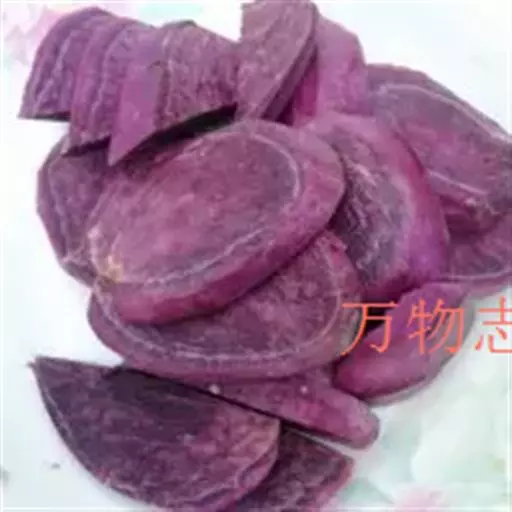 ①山川紫。该品种从日本引进,色素含量高,比普通紫红薯的花青素含量高2倍以上,除食用外还可用来提取色素。667平方米产量一般在1500公斤以上,薯形细长,整齐度差,主蔓茎长6米-7米。用该薯的嫩茎叶(尖)做菜,口感比空心菜还好。