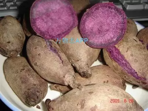 ③德国黑薯。2002年引进中国,中蔓,分枝多,薯块大小整齐,肉质细腻,香甜可口,抗病性较强,一般667平方米产量4000公斤~5000公斤,单株结薯可达10公斤以上,最大单薯重5.7公斤。除食用外,还可提取色素,是紫红薯品种中最佳品种之一。