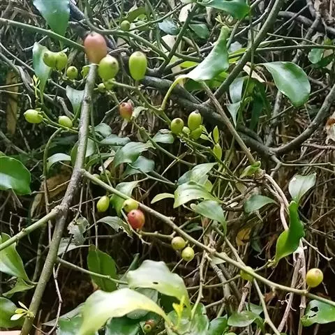 常绿小乔木,高约10米;树皮褐色,粗糙或有纵裂;枝圆柱状,带灰褐色,具条纹,有多数皮孔和半圆形的叶痕;多分枝,幼枝光滑无毛;小枝细长,淡绿色,节间稍肿大。