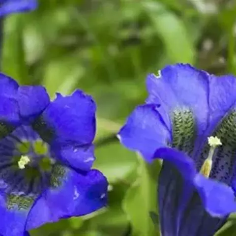 龙胆植物花色艳丽,色彩丰富,有紫、白、蓝、黄白等多种颜色,适宜作为花坛、花镜或盆花。龙胆最高不过四、五十厘米,大部份是矮小贴地丛生。一株上有许多分枝,花生于枝上顶端,成古钟形或漏斗形,有4-5个裂瓣,全缘的,也有细裂的成流海似的须。龙胆花在秋冬季一片枯黄的草丛中临风开放,显得分外朴实和幽静,龙胆开花一片片一簇簇,临风摇曳,显出一种淡雅、素静的美,因而成为著名的花卉。