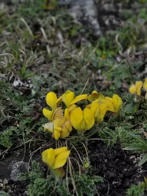 云雾雀儿豆,垫状草本。茎极短缩,基部木质,粗壮,多分枝,上部为覆瓦状的宿存叶柄和托叶所包裹。…