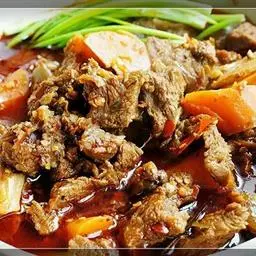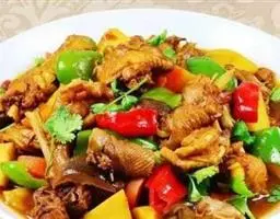 小鸡炖蘑菇是一道东北炖菜。通常是用干蘑菇、鸡肉和粉条一同炖制而成。榛蘑可以衬托出鸡肉的鲜香,粉条滑…