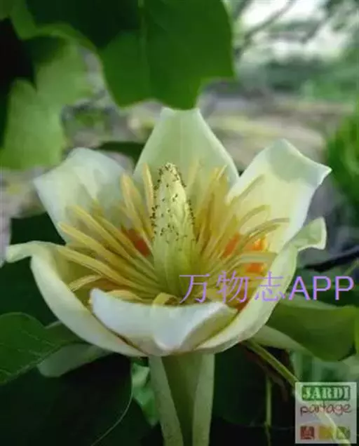 北美鹅掌楸(学名:Liriodendron tulipifera Linn.):乔木,原产地高可达60米,胸径3.5米,树皮深纵裂,小枝褐色或紫褐色,常带白粉。叶片长7-12厘米,近基部每边具2侧裂片,先端2浅裂。花杯状,花被片9,外轮3片绿色,花瓣状、卵形,长4-6厘米,近基部有一不规则的黄色带。聚合果长约7厘米、具翅的小坚果淡褐色,长约5毫米,顶端急尖、下部的小坚果常宿存过冬。花期5月,果期9-10月。