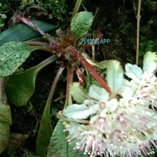 多年生草本,高17-21厘米;不育枝长23-35厘米,其叶互生,具柄,叶片阔卵形至近圆形,长0.3-1.8厘米,宽0.4-1.2厘米,边缘具11-13圆齿,腹面疏生褐色柔毛,背面无毛,叶柄长0.8-1厘米,具褐色柔毛。花茎疏生褐色长柔毛。基生叶数枚,具柄,叶片革质,倒卵形,长2.3-19厘米,宽1.3-11.5厘米,先端钝圆,全缘或具不明显之微波状小圆齿,基部楔形,腹面疏生褐色柔毛,背面无毛;茎生叶通常1枚,叶片狭椭圆形,长1.2-1.7厘米,宽0.5-0.75厘米,边缘通常具13圆齿,背面无毛,腹面和边缘疏生褐色柔毛。