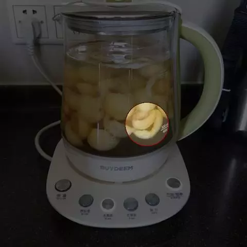 9. 倒入半碗清水,约至饺子的三分之一处。加盖,保持中大火。