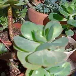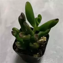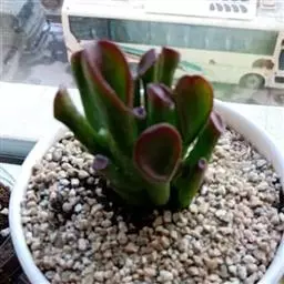 常绿小灌木。茎圆柱形,老茎木质化,呈灰绿色,嫩枝绿色。叶长椭圆形,对生,扁平,肉质,全缘,先端略尖,略呈匙状,长3~5厘米,宽2~3厘米,叶色翠绿有光泽。夏秋开花,花瓣五枚,伞房花序花白色或浅红色。燕子掌放置在阳光充足的地方露养,叶子的边缘就会变红。