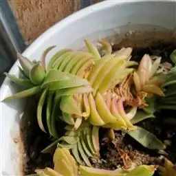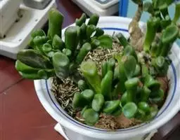 (5) 光照燕子掌喜阳光, 但夏季忌阳光直晒, 应放在通风、阴凉处养护, 其他季节可适当增加光照, 叶色会更加翠绿丰满。冬季气温低, 增加光照, 减少浇水, 有利于提高抗寒力。长期放在阴暗的地方, 植株会徒长, 叶片会变薄、变黄, 降低观赏价值。
