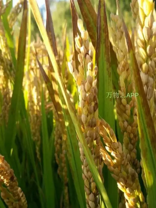 谷粒瘟:产生褐色椭圆形或不规则斑,可使稻谷变黑。有的颖壳无症状,护颖受害变褐,使种子带菌。