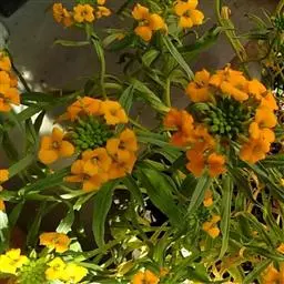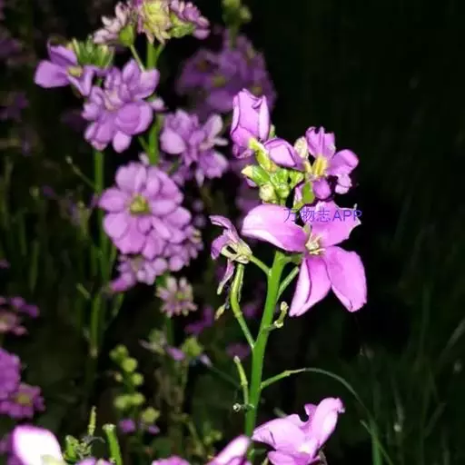 长角果圆柱形,长7-8厘米,直径约3毫米,果瓣中脉明显,顶端浅裂;果梗粗壮,长10-15毫米。种子近圆形,直径约2毫米,扁平,深褐色,边缘具有白色膜质的翅。花期4-5月,花紫红色,也有淡红、淡黄或白色的,有香气,果实细长。供观赏。