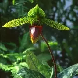 飘带兜兰 Stein)是兰科兜兰属的附生植物,叶基生,叶片宽带形,厚革质,无毛;花葶近直立,绿色,…