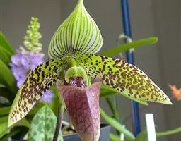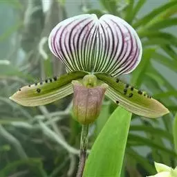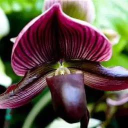 紫纹兜兰 Stein)是兰科兜兰属的地生或半附生植物。叶基生,叶片狭椭圆形或长圆状椭圆形,…
