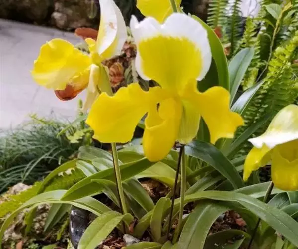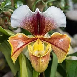杏黄兜兰 兜兰又名拖鞋兰,夏秋或临冬开花,花期最长达70余天。西南地区的兜兰叶片通常要厚实硬朗些,花色更为亮丽显眼,有更好的抗旱保水机制,在抗逆性新品种选育上具有非常高的利用价值。