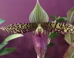 紫毛兜兰 Stein)是兰科兜兰属地生或附生植物。叶深黄绿色,…