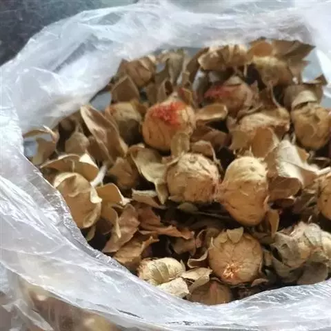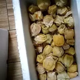 酸浆果实成熟后自然脱落,人工捡拾收获,其质量最佳。成熟果外宿花萼枯黄,果实淡黄色,香味浓郁。如果果实成熟度不够,味差,则应催熟。可用2000倍的乙烯利喷洒果实后堆放,待其充分成熟。供贮藏或远销运输的果实,以带果外宿存花萼为宜。