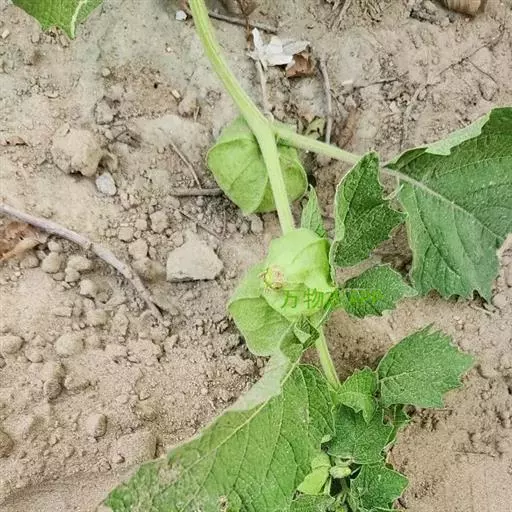 酸浆为茄科酸浆属多年生直立草本植物,株高50-80cm,地上茎常不分枝,有纵棱,茎节膨大,幼茎被有较密的柔毛。根状茎白色,横卧地下,多分枝,节部有不定根。叶互生,每节生有1-2片叶,叶有短柄,长1-3cm,叶片卵形,长6-9cm,宽5-7cm,先端渐尖,基部宽楔形,边缘有不整齐的粗锯齿或呈波状,无毛。花5基数,单生于叶腋内,每株5-10朵。花萼绿色,5浅裂,花后自膨大成卵囊状,基部稍内凹,长2.5-5cm,直径2.5-3.5cm,薄革质,成熟时橙红色或火红色;花冠辐射状,白色,雄蕊5,花药黄色,长0.3-0.35cm,子房上位,2心皮2室,柱头头状,长1.0-1.1cm。萼内浆果橙红色,直径1.5-2.5cm,单果重2.5-4.3g,每果内含种子210-320粒,种子肾形,淡黄色,长约0.2cm,千粒重1.12g。
