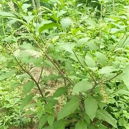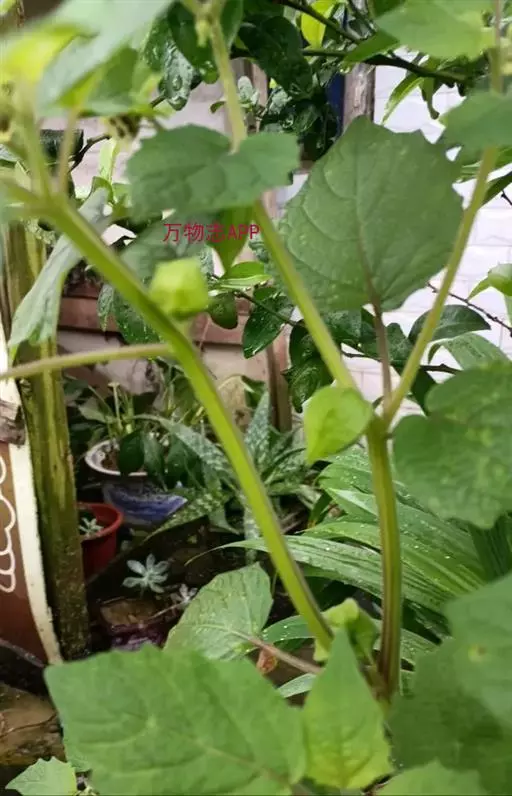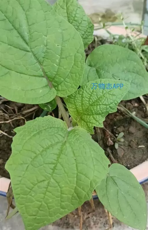 多年生草本,基部常匍匐生根。茎高约40-80cm,基部略带木质,分枝稀疏或不分枝,茎节不甚膨大,常被有柔毛,尤其以幼嫩部分较密。叶长5-15cm,宽2-8cm,长卵形至阔卵形、有时菱状卵形,顶端渐尖,基部不对称狭楔形、下延至叶柄,全缘而波状或者有粗牙齿、有时每边具少数不等大的三角形大牙齿,两面被有柔毛,沿叶脉较密,上面的毛常不脱落,沿叶脉亦有短硬毛;叶柄长约1-3cm。