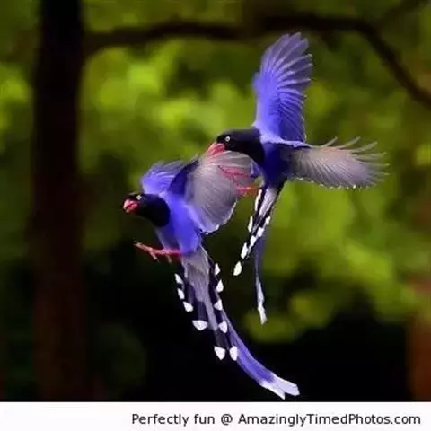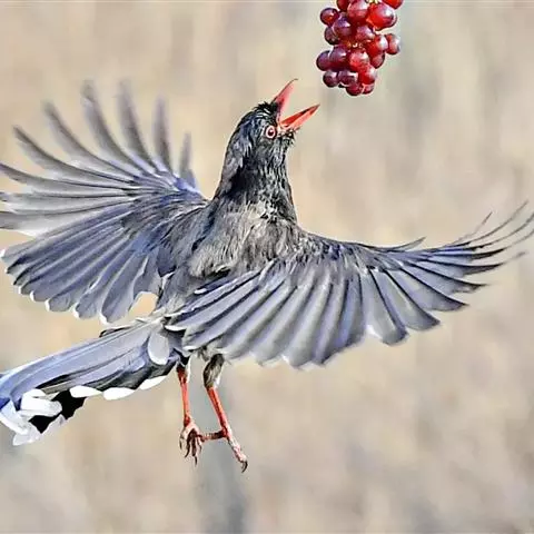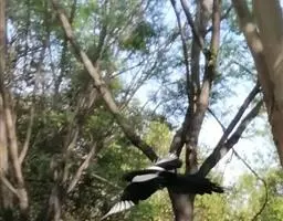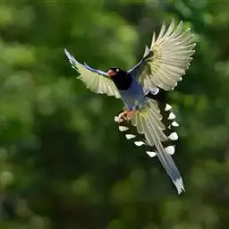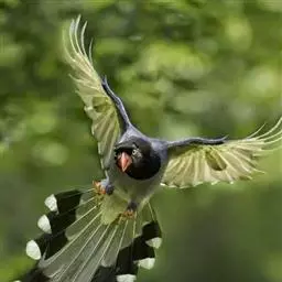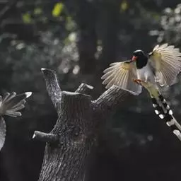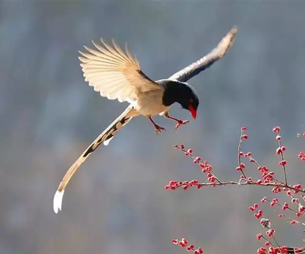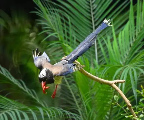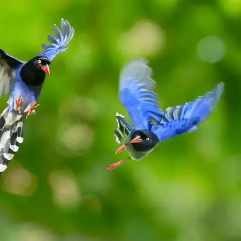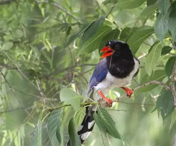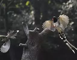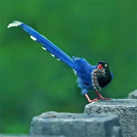 有时还会凶悍地侵入其他鸟类的巢内,攻击残食幼雏和鸟卵。每年的3月至5月是红嘴蓝鹊的繁殖期,在此期间,亲鸟护巢性极强,性情十分凶悍,人若接近其巢区,则啼叫飞舞不止,甚至对人体进行攻击。