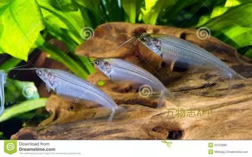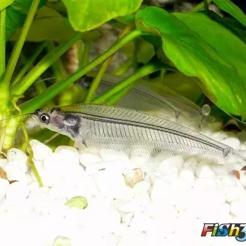 尾柄极短,尾鳍叉形。背鳍退化,臀部和臀鳍基很长,前后鳍条等宽。通体透明,脊骨、刺、鳍条和内脏等清晰可见。色泽淡青如玉,活像一件高档玉雕工艺品。