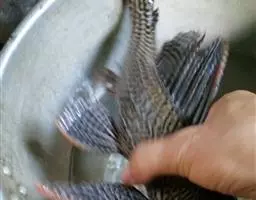 (二)、感染详述。斑点是含有幼虫期的肠吸虫的胞囊,如皮居新穴吸虫,胞囊里有很重的色素。幼虫期也被称为皮居船形吸虫。成年期的虫子生活在水鸟的肠内,水鸟是吃了藏匿着幼虫的鱼而受到侵扰的。在水鸟的内脏里,包裹着每一个幼虫的膜散开,虫子在几周之后发育成熟。成虫产的卵在鸟的排泄物中排出,落入水中的卵发育成片自由游动的幼虫,幼虫寄生于水螺身上。几周之后,寄生虫离开水螺并开始了寄一开合适的鱼类寄主的又一个周期。当寄生虫达到大约1毫米宽时,每个虫子身体上生出一层黑膜,在皮肤下形成独特的斑点。轻微的黑斑病传染对鱼没有什么伤害,因为生活周期,环境条件复杂,是不会使黑斑病从一条鱼上传染到另一条鱼身上的。