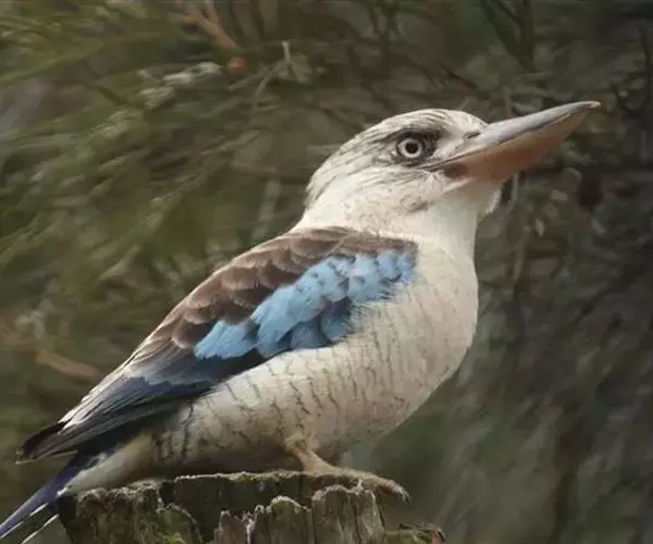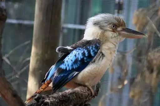 笑翠鸟是澳大利亚东部的翠鸟科的一种食鱼鸟,体长42-46厘米,嘴长8-10厘米,体重500克。是翠鸟家族中和大鱼狗同为体形最大的两种翠鸟之一。以其鸣声似狂笑而得名。笑翠鸟有一个白色的大脑袋,头顶有小棕帽。脸颊有棕色斑块。喙大而有力,黑色。上身灰褐色,腹部灰白交间。雄鸟翅膀有蓝色以做识别。胸腹部白色,尾巴很长,棕色和黑色相间。腿短灰色。