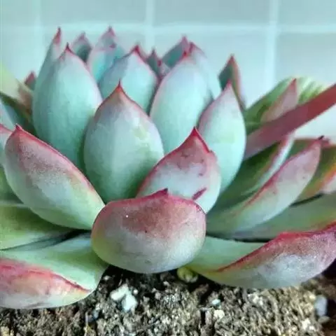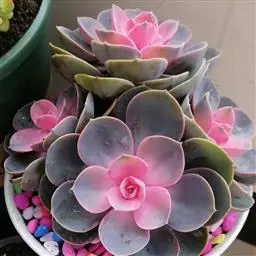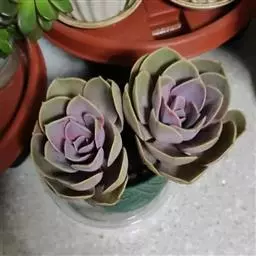 紫珍珠是景天科石莲花属的多年生肉质草本植物。植株中小型;叶片肉质,匙形,呈莲座状紧密排列;叶片粉紫色,…