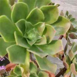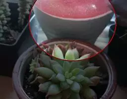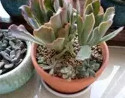 红缘莲花掌属蔷薇目、景天科植物,原产大西洋的加那利群岛。质厚,蓝绿色,被白霜,叶缘红褐色。聚伞花序,…