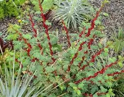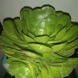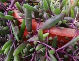 叶子表面宽厚,富肉质感且带有磨纱质感,看像石头质地;开红色小花,生于植株顶部,倒伞形密生,形状像花…