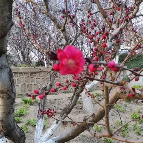 撒金碧桃 Voss)是李亚科,桃属植物桃的变种,叶为窄椭圆形至披针形,长15厘米,宽4厘米,先端成…
