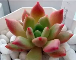 小红衣是景天科、拟石莲花属的一种多肉植物。叶片匙形,扁平细长,叶表具白粉,有明显的半透明边缘,…
