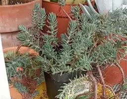 薄雪万年草别名矶小松,景天科景天属多年生草本植物,其细小的蓝绿色棒状叶片环绕生长于茎端,…