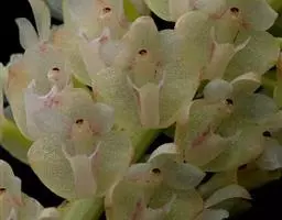 指甲兰是兰科指甲兰属植物。其茎粗壮;叶带状;总状花序疏生数朵花;萼片和花瓣淡白色,…