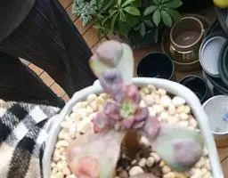 江户紫,景天科伽蓝菜属草本植物,是多年生草本花卉。花白色,但栽培中很少能见到花,常作观叶植物栽培。…