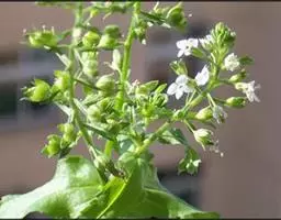 总状花序长,果期达20厘米;苞片与叶同形而略小;花梗极短;花萼裂片长矩圆形至宽条形,长3-4毫米;花冠白色或浅蓝色,长2毫米,裂片长矩圆形至卵形;雄蕊短于花冠。闻果倒心形,明显侧扁,长3-4毫米,宽略过之,边缘生短腺毛,宿存的花柱不超出凹口。种子矩圆形。花期5-6月。