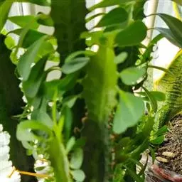 虎刺梅:别称铁海棠,是蔓生灌木植物。茎多分枝,长60-100厘米,直径5-10毫米,具纵棱,密生硬…