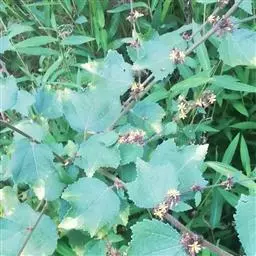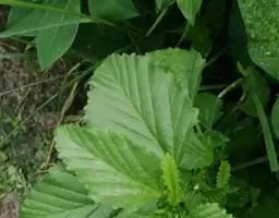 叶具短柄,纸质,卵形或卵状矩圆形,长10-15厘米,宽4-8厘米,先端渐尖,基部浑圆,3脉,秃净或叶柄及主脉上被星状柔毛,边缘有小锯齿;托叶线状披针形,长约为叶柄之半。