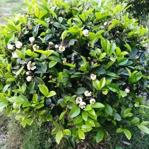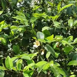 落叶乔木, 高10m。叶长10~20cm,宽4~9cm,叶缘呈波形:托叶痕达叶柄中部以上。花单生叶腋,酪黄色,极芳香。