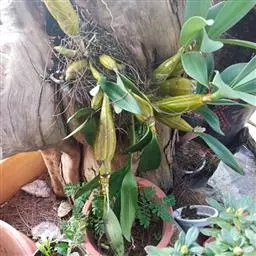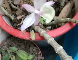 通常选用四壁多孔的塑料或陶瓷花盆,用碳根、泥炭藓、树皮块、木炭块等作盆栽材料。根据兰苗的大小,选择不同规格的花盆,但不宜用大盆栽小苗口上述栽好材料在使用前必需在清水中浸泡1天以上备用。盆底要多垫大瓦片或碎砖块,深度至盆底约1/3处,然后将兰苗放于盆中央,并在一旁插一细竹竿以固定兰苗,再填入其他栽培材料,注意根与根之间用材料隔开。