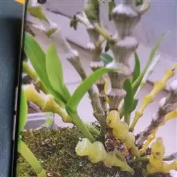 美花石斛是兰科石斛属多年生草本。茎柔弱,斜立或下垂,呈细圆柱形,有时分枝;叶互生于茎上,…