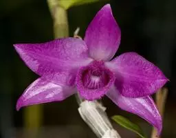 玫瑰石斛是兰科石斛属的多年生附生草本植物。茎斜下或下垂,青绿色,圆柱形,…