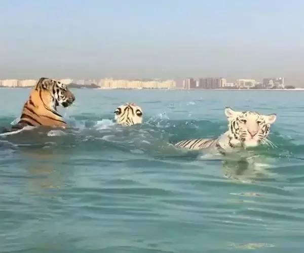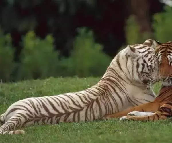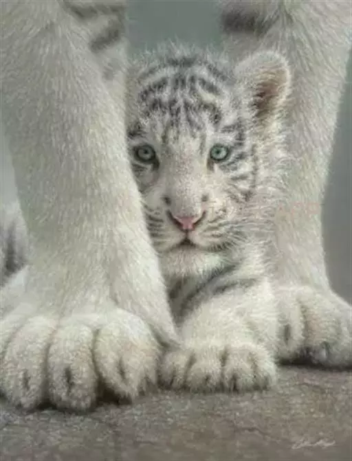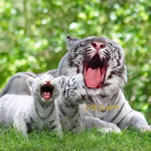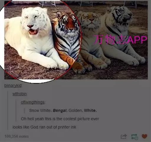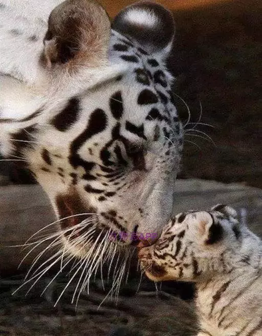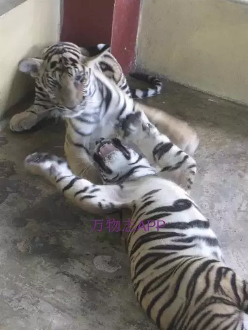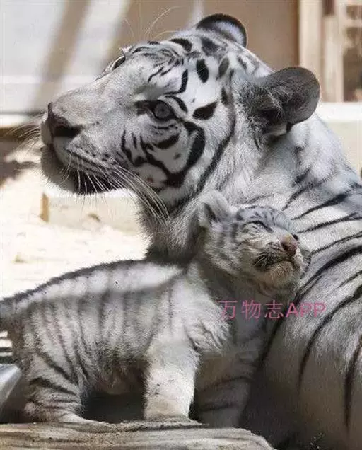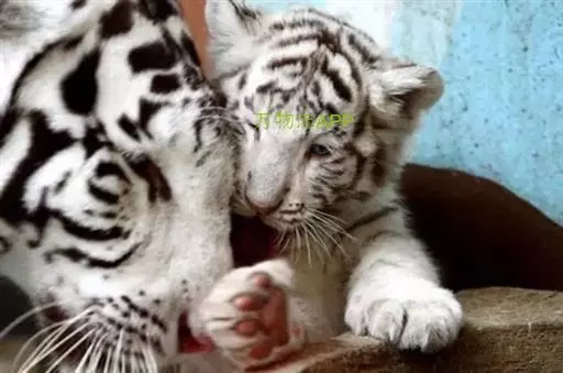 2、雪虎,全身白色,有淡淡的棕色斑纹,野生已灭绝,数量比白虎少得多。