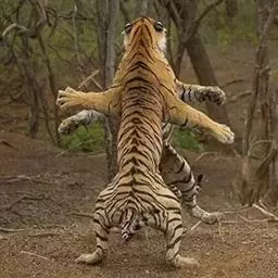 孟加拉虎拥有非常强悍的捕猎技能和威慑力,会攻击一切出现在它眼前的活物,它进食时即使是成年亚洲象也会绕道,孟加拉虎拥有猫科动物当中最强悍的捕猎技能,甚至捕食世界上最大的白肢野牛,猎杀泽鳄鱼,也是懒熊杀手,还有很多孟加拉虎捕杀亚洲岩蟒、花豹、母印度犀牛和亚成年母象的事件。它们是世界上奔跑速度最快的动物之一,时速接近80公里/小时。 [2-3]