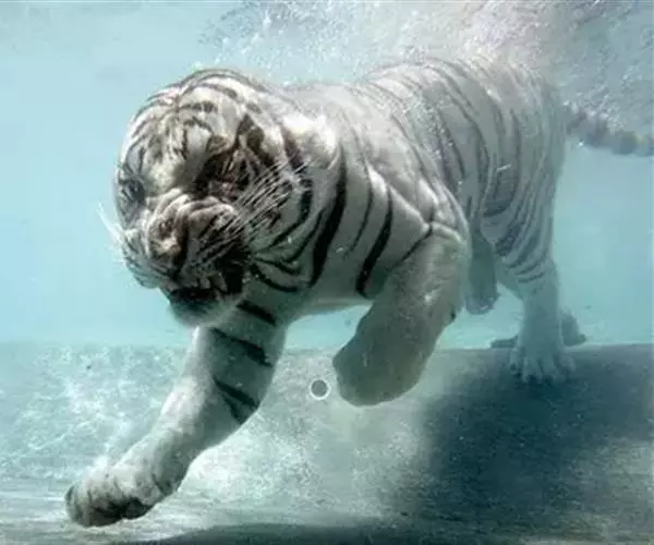 4.纯白虎,全身白色,没有斑纹,全世界动物园里仅发现过两例。
